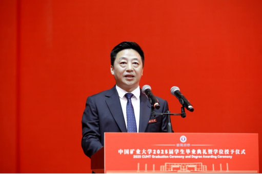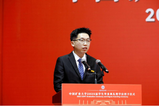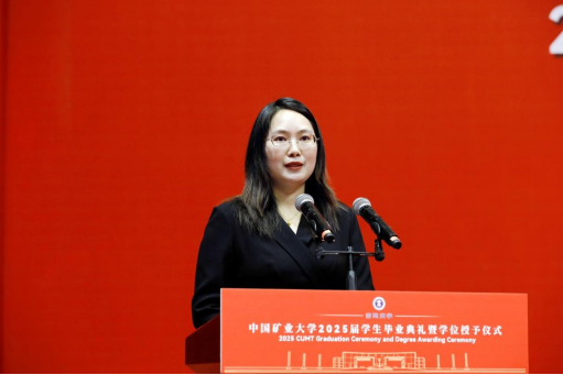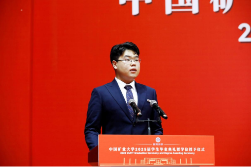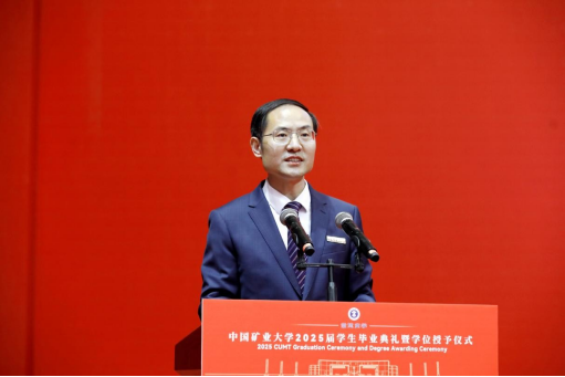 President Zhao Hongwei delivered a speech titled “Cultivate Virtue, Pursue Knowledge, Act with Diligence, and Embrace Responsibility.” On behalf of the university, he extended warm congratulations to the students who had successfully completed their studies and expressed heartfelt gratitude to the teachers and parents who had devotedly supported and encouraged them. He noted that the Class of 2025 not only forged their own brilliant chapters through hard work but also collectively witnessed a period of rapid development at the university. They are vivid participants and witnesses of CUMT's progress. The university motto “Esteem Virtue and Value Learning” is a concentrated reflection of its educational philosophy and a spiritual guide for CUMT students. Centering on the themes of “virtue, learning, action, and responsibility,” he offered four expectations for all graduates. First, the foundation of being a person lies in self-cultivation: nurture the heart and uphold morality. He shared the story of retired professors Li Anchang and Cao Yingluo, who donated their life savings to establish the “Mathematics Chunhui Inspirational Scholarship,” encouraging students to be grateful, to give back, and to measure their words and deeds with an inner moral compass, establishing firm personal integrity. Second, the way of learning values the pursuit of knowledge: seek truth and explore bravely. He cited the example of distinguished alumnus and former President Xie Heping, an academician who led his team to make original breakthroughs in cutting-edge fields such as underground space development and hydrogen production from seawater. He encouraged students to carry a deep sense of national mission, to embody the spirit of “valuing learning,” to scale the heights of science, and to align personal ideals with national development, thereby achieving higher personal value in a broader world. Third, success in action relies on dedication: value hard work and remain focused. He shared the story of Ge Shanfeng, an alumnus from the Class of 2009 of the School of Environment and Surveying and Mapping, who has spent 16 years dedicated to frontline work in remote mining areas, earning national honors including the National Model Worker and the May 1st Labor Medal. This was to encourage students to stay grounded, persevere, and create extraordinary achievements in ordinary positions through continuous effort and dedication. Fourth, taking responsibility requires commitment: serve the nation with devotion. He cited the example of alumnus Yang Cong from the School of Public Administration, who has been rooted in the remote Ali region of Tibet for 11 years, hoping that students would focus on their duties and serve the nation and society. With ideals as the blade to cut through confusion and practical work as the pen to write responsibility, youth should be tempered into steel in the furnace of dedication.