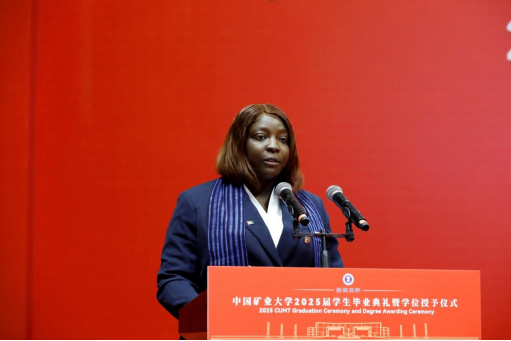 During the representative speech segment, Professor Yang Hui from the School of Resources and Earth Sciences expressed heartfelt farewell and best wishes to the graduates who are about to set sail. She encouraged them to dare to choose, stay true to their choices, and shoulder their responsibilities; to reshape themselves through love, refine their value through perseverance, and elevate their purpose through dedication. Undergraduate representative Yang Tengrui, a student majoring in Safety Engineering from the School of Safety Engineering, recounted his four-year journey at CUMT exploring the light of safety. He shared how he gained confidence in academia, understood national responsibility through practical service, and pursued patriotic ideals in research. He called on his fellow graduates to remember the mission of CUMT students and integrate their personal dreams into the cause of national energy security. Graduate representative Wang Baiyi, a Mechanical Engineering student from the School of Mechanical and ElectricalEngineering, told the story of his seven-year journey of growth at CUMT. He pledged to uphold the university motto of “Esteem Virtue and Value Learning” and to continue advancing in the field of robotics, contributing youthful strength to the development of extreme-environment robotics and embodied intelligence in China. As the international student representative, Korna from Guinea, who majored in Civil Engineering at the School of Mechanics and Civil Engineering, expressed her deep affection and sincere gratitude to China and CUMT. She stated that she would remain at CUMT to pursue further academic work in her field, and looked forward to applying her expertise in the future to promote engineering cooperation and exchange between China and Africa.