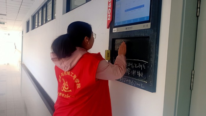为了给大家提供一个整洁的教学区环境,针对教室外小黑板粉尘过多、过期消息无人清理等问题,电子信息类19-09班团支部于125日开展了清洁教室小黑板的志愿服务工作。