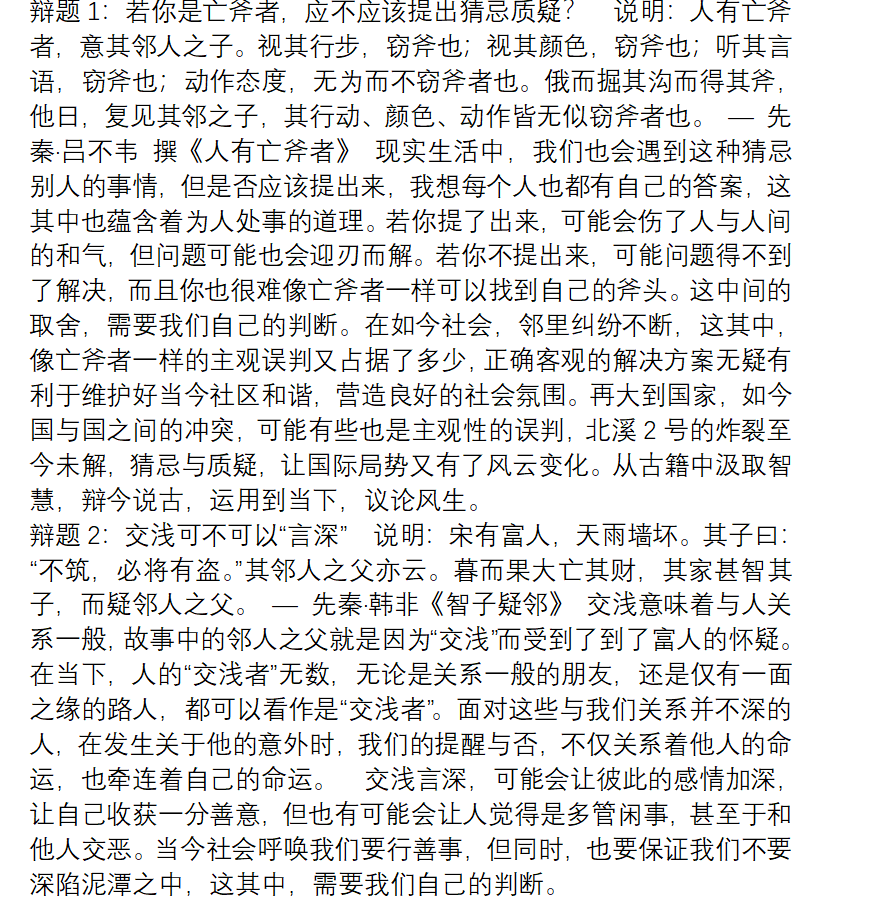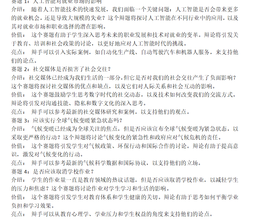 活动得到了同学们的积极响应,大家于线上踊跃报名并积极加入相关活动群。参与者或从自身经验出发,深入探讨热门话题,如人工智能对就业市场的影响;或巧妙结合古文,自主创造新颖辩题,如亡斧者应不应该提出猜忌质疑。活动后期,成人游戏