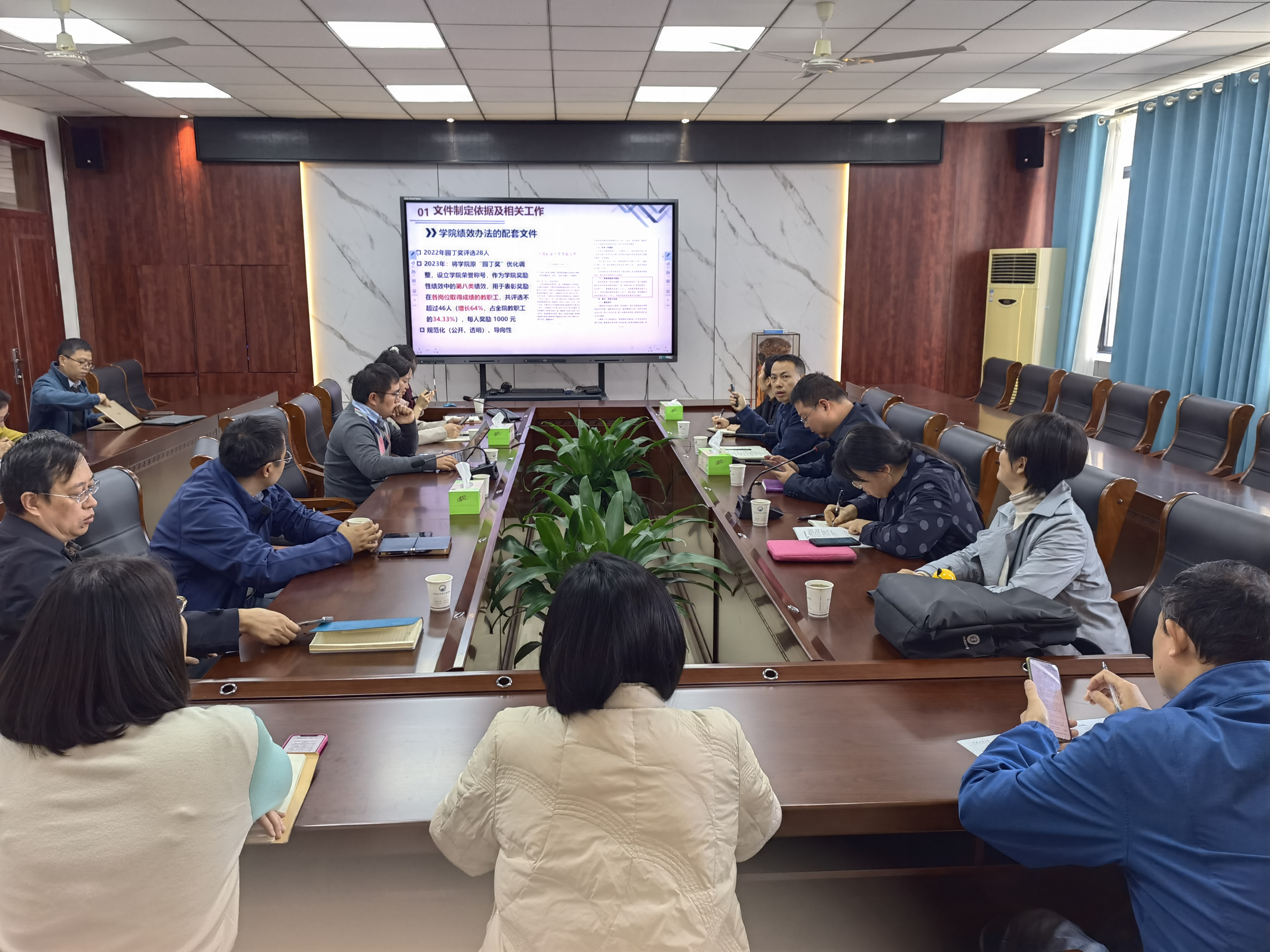 与会人员就如何更好调动教职工的工作积极性、优化个别评选指标等进行了深入交流。
