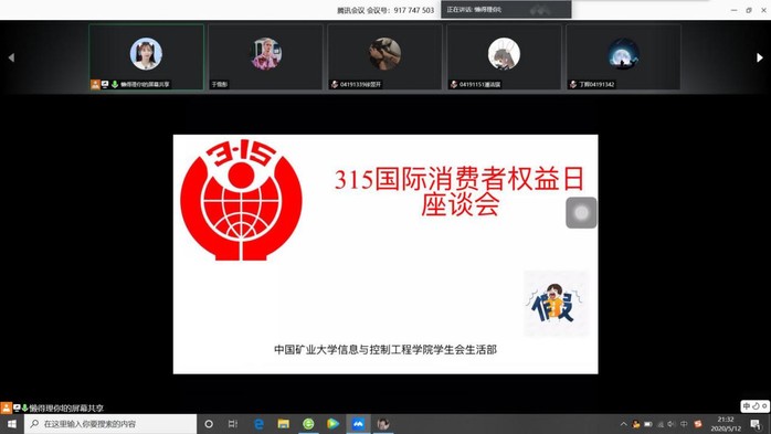 晚上8点,全体成员进入腾讯会议。在主持人贾丽娟同学对“315”进行了简单的解释与知识补充后,线上座谈会正式开始。会议中,各个参会代表依次发言,将之前收集到的有关同学们日常消费遇到的问题全部列举出来,并在列举完毕后进行筛选与总结,找出其中的共性问题。这些问题再由全体成员一同进行分析与解答,帮助同学们解决问题。此外,在经过大家的一致同意后,会议还决定建立权利信息反馈机制,机制主要由学生会生活部长期负责,建立的机制内容包括维权邮箱和维权热线,生活部统一制作并分发维权表,不定期召开联合会议,收集学生们的权益问题,并定期将反映的问题进行总结,汇编成册,备份保存。
