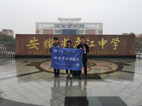 安徽省庐江中学毕业学子五名同学积极参加举行的镜湖有约•优秀学子母校行母校行活动。他们去前往安徽省庐江中学高三年级各班教室,按照之前和学校沟通后的计划,开始进行母校行的宣传活动。宣讲成员结合自身经历,将矿大的悠久历史和求学的切身感受告诉同学们,为他们介绍关于矿大的点点滴滴,同时发放学校的宣传物品,张贴矿大的宣传海报并悬挂横幅。随后,组员在学校的礼堂集合,进行PPT展示,并现场给予同学们一些报考矿大的建议,欢迎他们选择矿大。